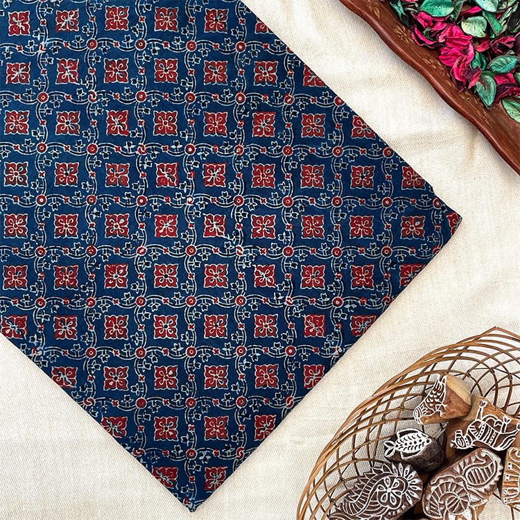 Pure Cotton Hand Block Ajrakh Printed Fabric – Indigo Blue