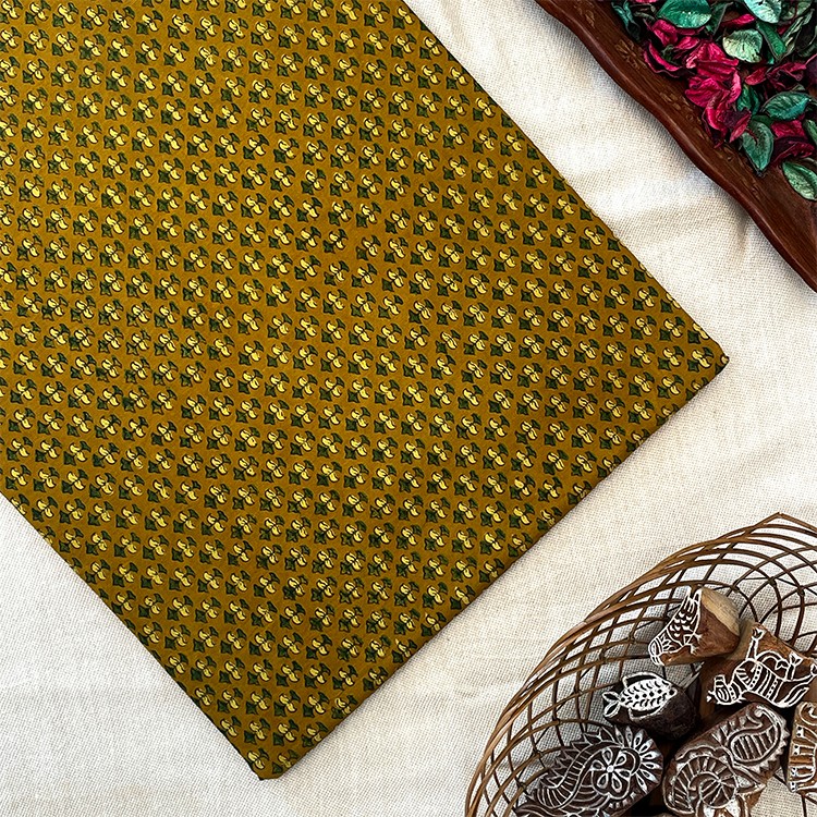 Pure Cotton Hand Block Ajrakh Printed Fabric – Small Butti – Henna