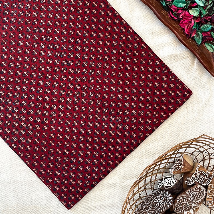 Pure Cotton Hand Block Ajrakh Printed Fabric – Small Butti – Red