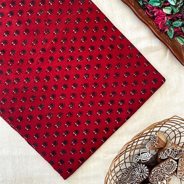 In this method, wooden blocks carved with intricate details are used to manually print beautiful designs that usually cover the entire length of a fabric. All the colours and Dyes used are Natural, Organic and made with Vegetables/plants.