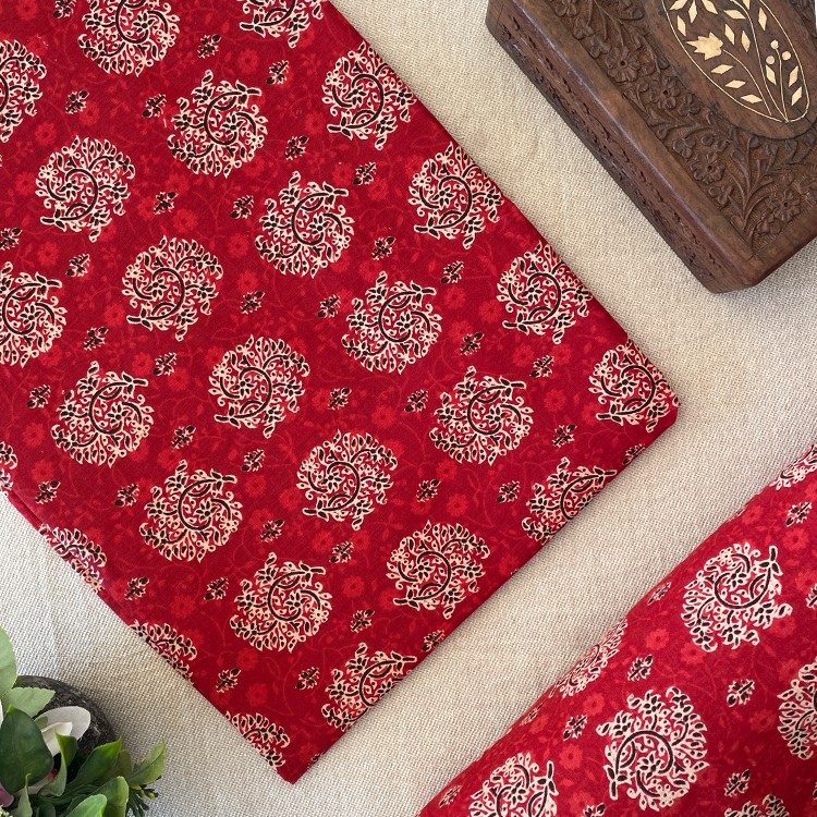 Red/Cream Big Round Butta Pure Cotton Printed Fabric